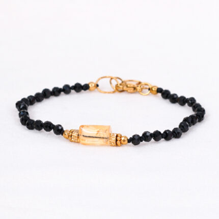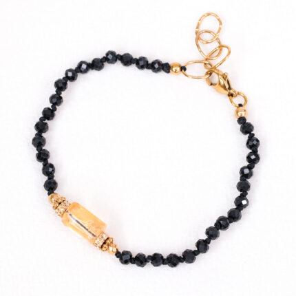 Bransoletka z 3x4 mm czarnych turmalinów, cytrynu, złotych hematytów oraz elementów ze stali nierdzewnej.