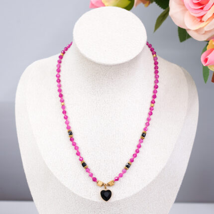 Naszyjnik różowy jadeit serce
