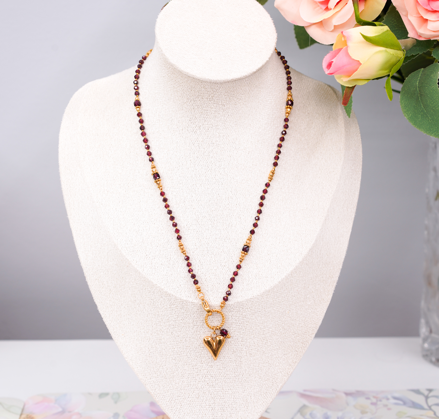 Naszyjnik granat, serce